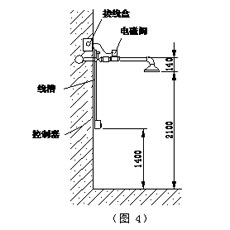 安装时需要与土建和管路安装相配合(详见图3), 将塑料预埋盒及穿线管用水泥固定在墙体内,绝对不允许将引线直接抹在墙内,电源放置在干燥通风无易燃物品处。
